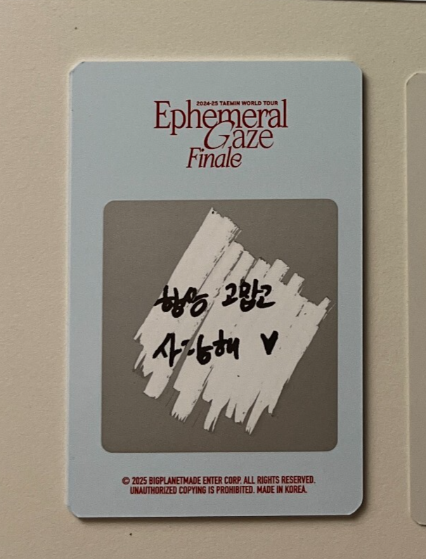 - TAEMIN Official Trading Letter Card 2025 World Tour 'Ephemeral Gaze Finale' Rare