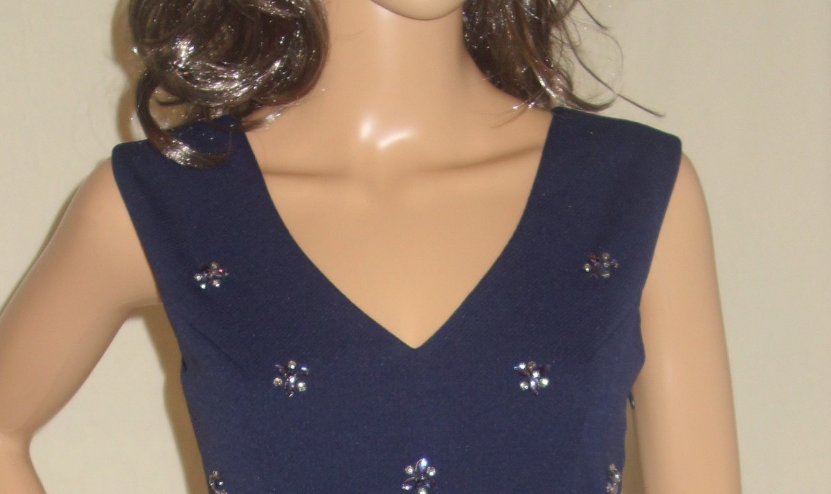 TAVI dress navy with jeweled details and cut out back new sz xlarge