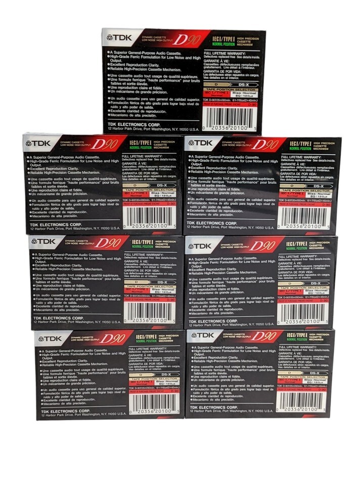 - TDK D90 Blank Audiocassettes Normal Bias Lot of 7 Brand New Sealed