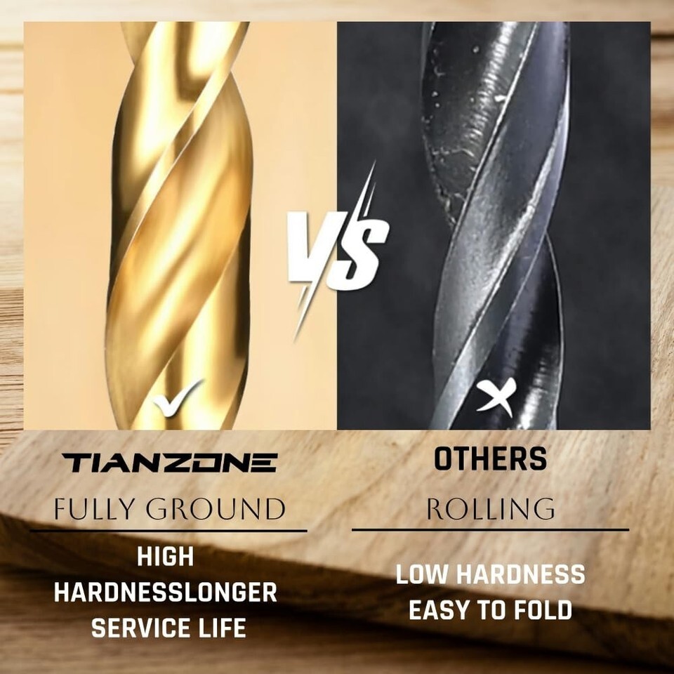 PREMIUM HSS TITANIUM COATINGIndustry grade 4341 high speed steel drill bits, harder than 4241 HSS used in other similar drill bits. Titanium coating increases wear-resistance and durability.