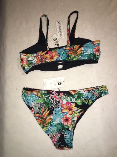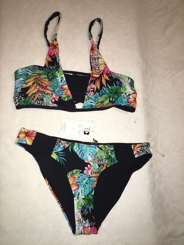 - TINIBIKINI tropical Print black Reversible Bikini Swimsuit SZ xL NEW