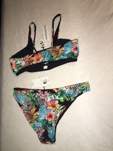 TINIBIKINI tropical Print black Reversible Bikini Swimsuit SZ xL NEW