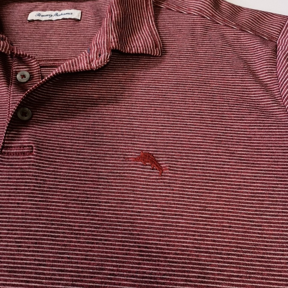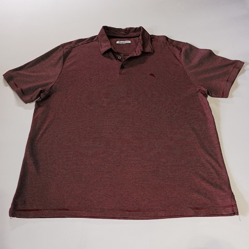 - TOMMY BAHAMA Maroon Polo Shirt Men's XL Short Sleeve Horizontal Stripes