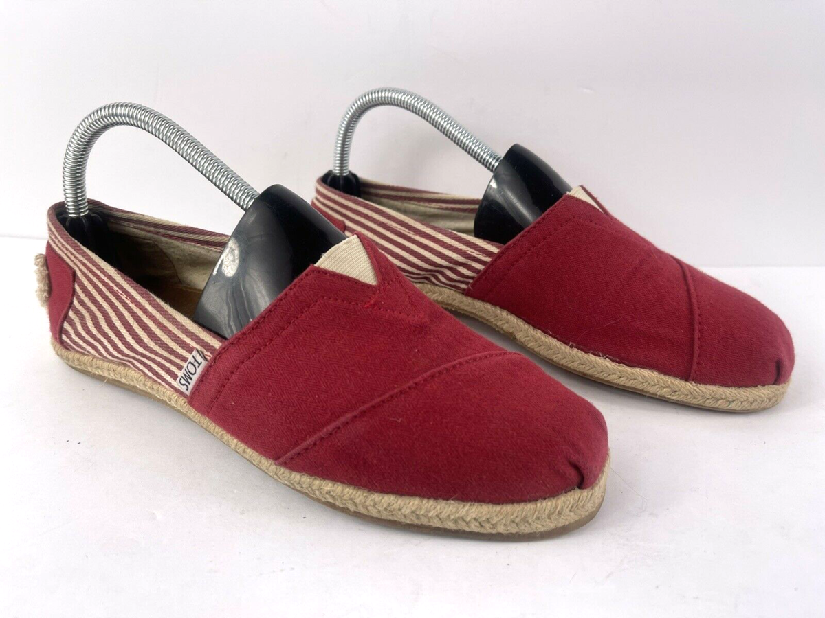 - TOMS Loafers Women 8 M Alpargata Shoes White Red Canvas Striped Slip-On flats