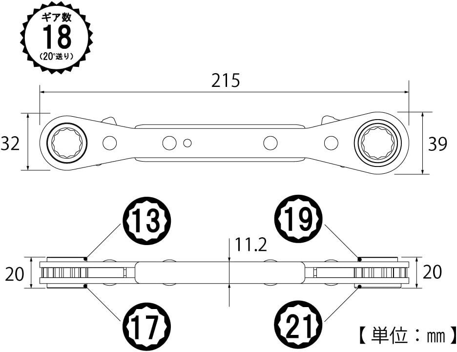 - TOP 4 Size Plate Ratchet Wrench 13X17・19X21mm PRW-6 20° Feed 12-Point
