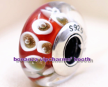 - TOP 925 Sterling Silver Handmade Glass Bead Shiny Red & Gold Murano Glass Charm