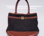 Primary image for TORY BURCH - Brown Leather And Charcoal Wool Felt Shoulder/Hand Tote Bag Purse