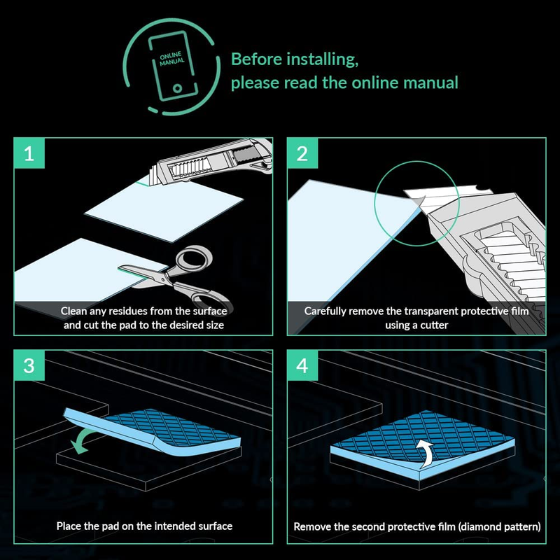 PLEASE NOTE: Due to the extremely low hardness of thermally conductive pads, a more demanding installation is to be expected. Please refer to the User Manual
