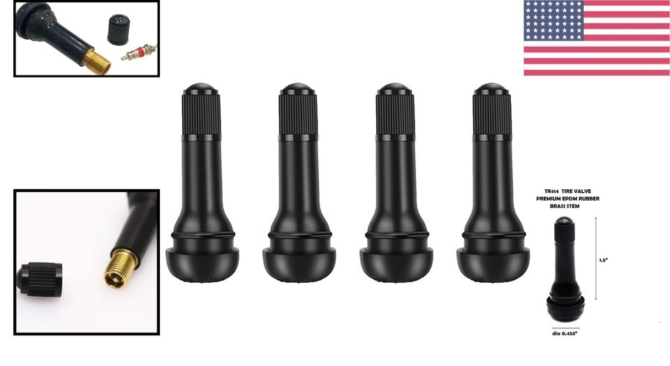 - TR414 Rubber Snap-In Valve Stems for 0.453 Inches Rim Holes - Set of 4