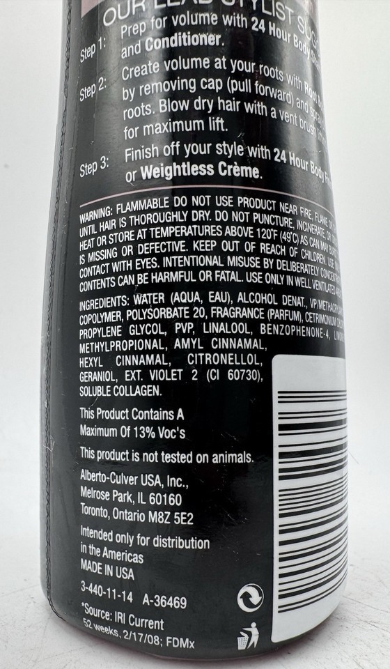 - TRESemme 24 Hour Body Root Boosting Spray Hairspray Creates Weightless Lift, 8oz