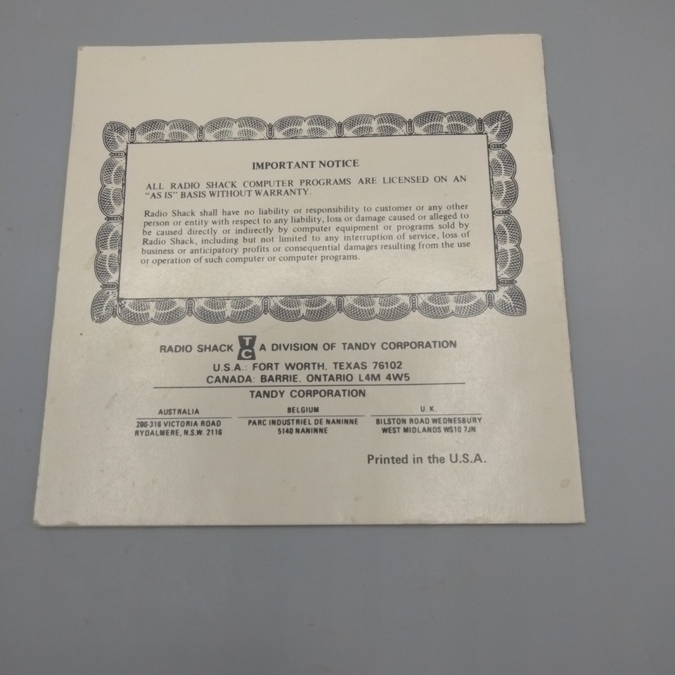 - TRS-80 Project Nebula Game Insert (1981) for Radio Shack Tandy Color Computer