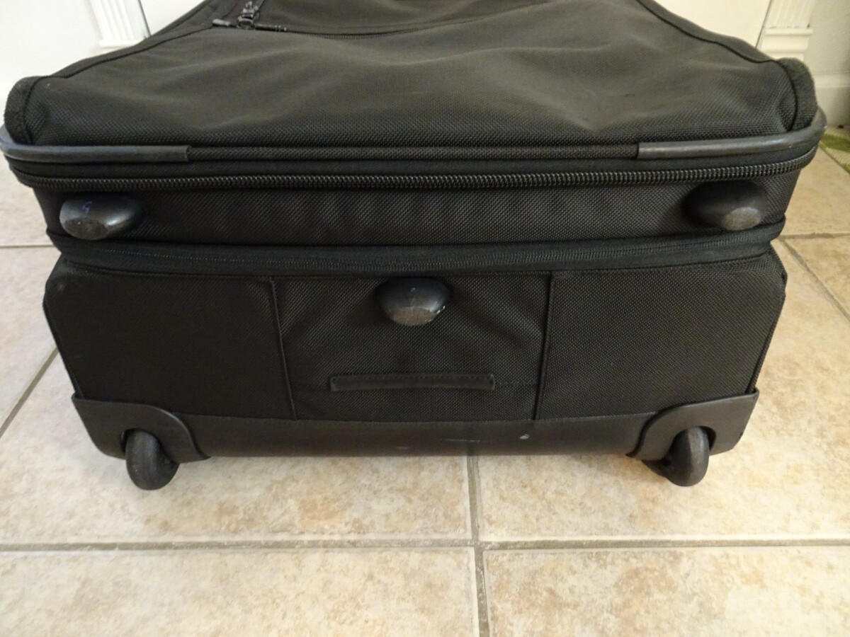 Condition: Pre-owned. Clean overall with normal signs of use on wheels and corners. All zippers work smoothly. Telescopic handle extends and locks properly.