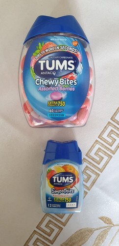- TUMS Chewy Bites 60 Ct Berries Extra Strength 750mg & 12 Ct Smoothies Chewable