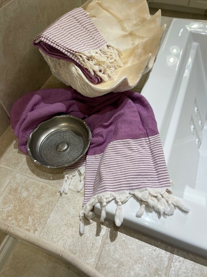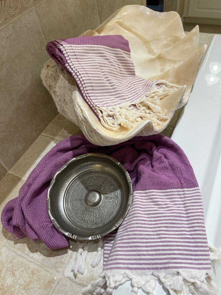 Genuine Peshtemal Bath Towels. Woven by true craftsman in Turkey this premium pestemal towel is made with 100% lightweight cotton to help keep you dry, warm, and comfortable after a hot shower, day at the beach, or steamy hot Yoga.