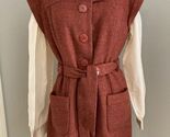 Beautiful Orange/rust tweed long buttoned tunic vest with belt, pockets, fully lined.
