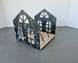 MADE OF METAL, EACH END SHAPED LIKE A HOUSE FACADE