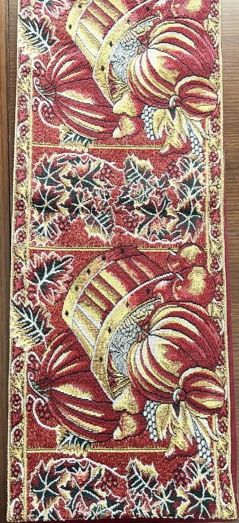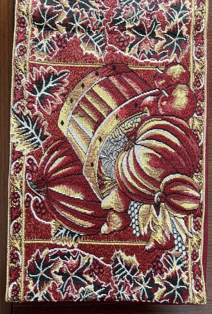 - Table Runner Lined 70 x 12 Fall Colors Burgundy Rust Gold Yellow Fruit Pumpkins