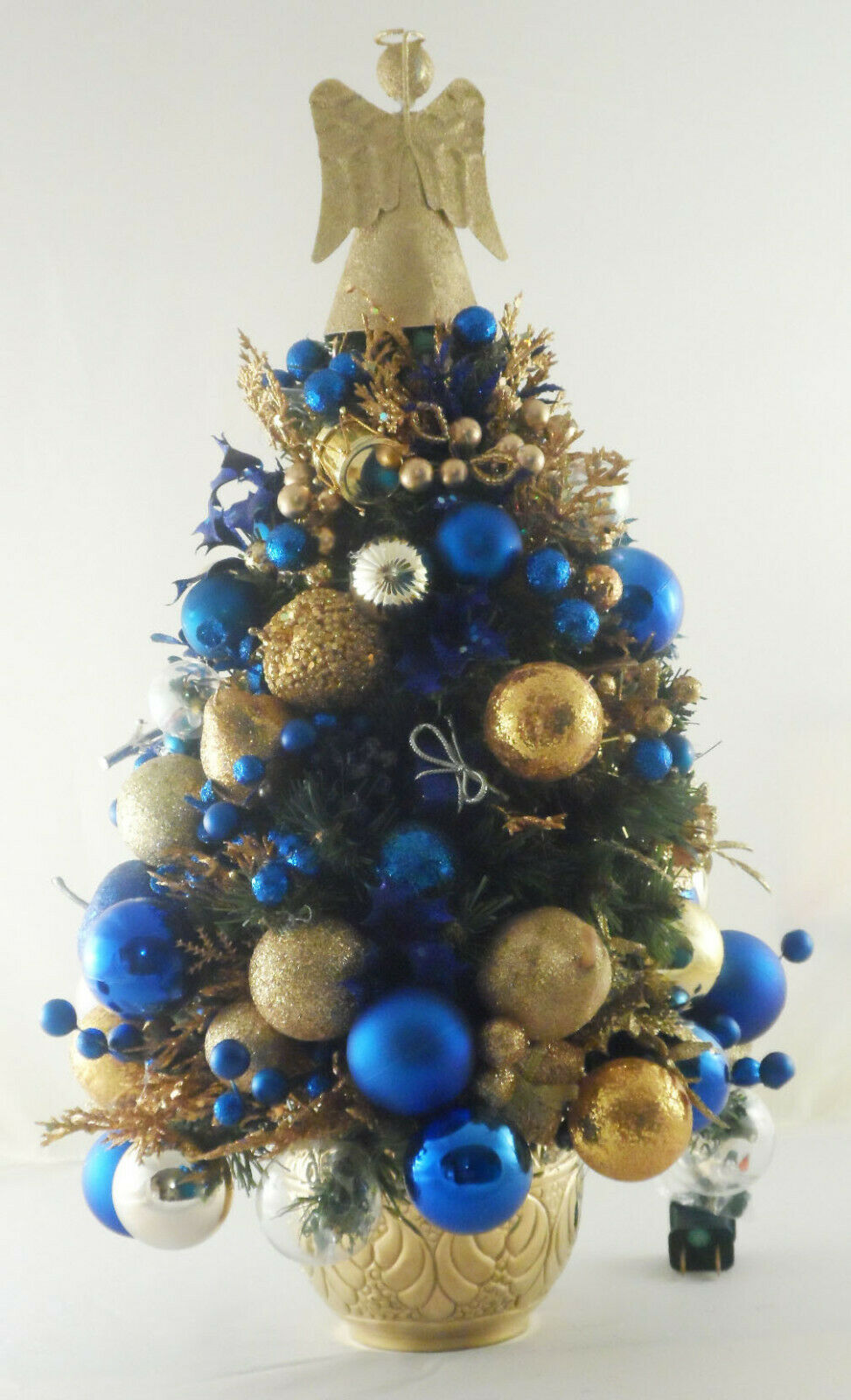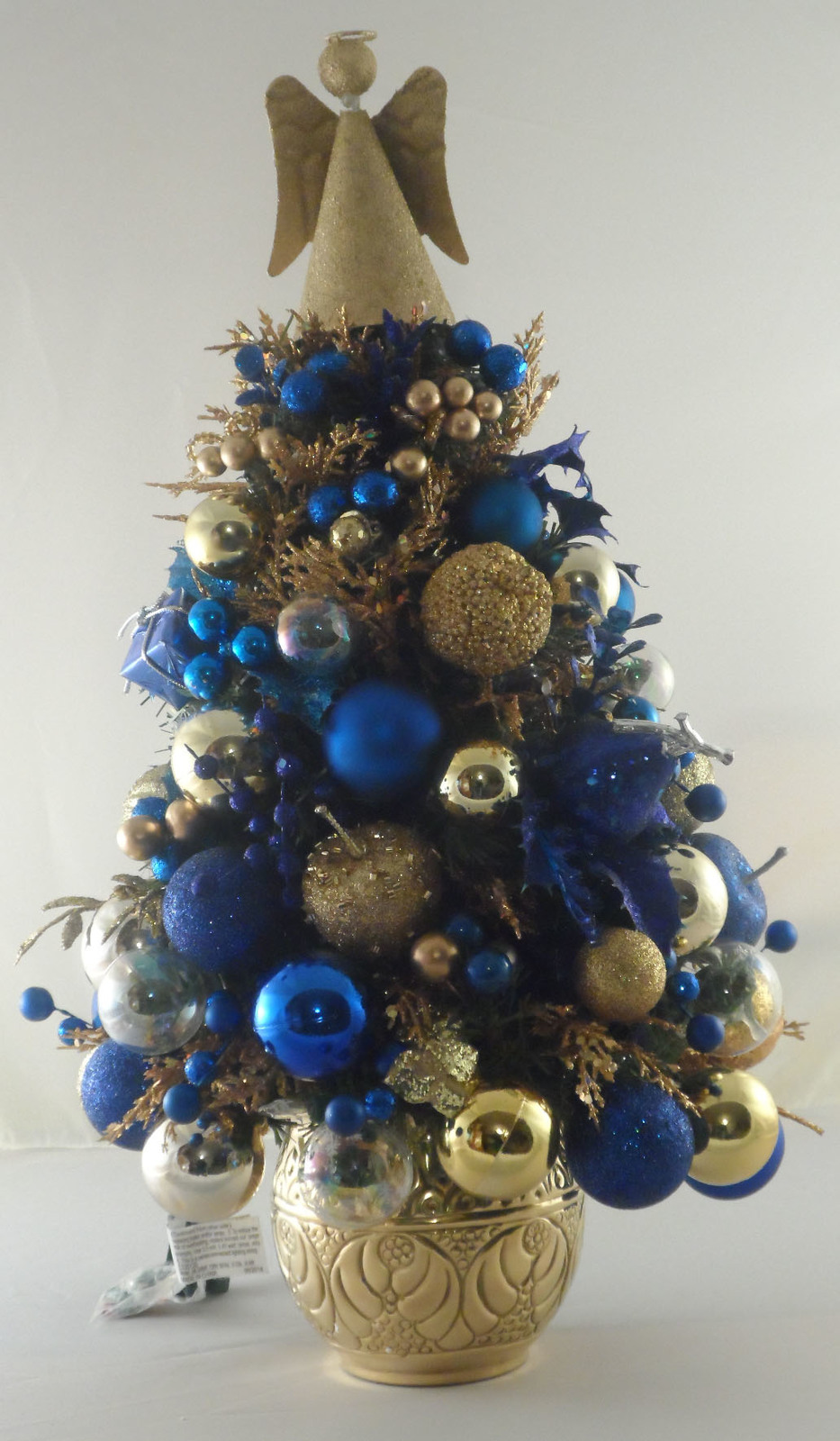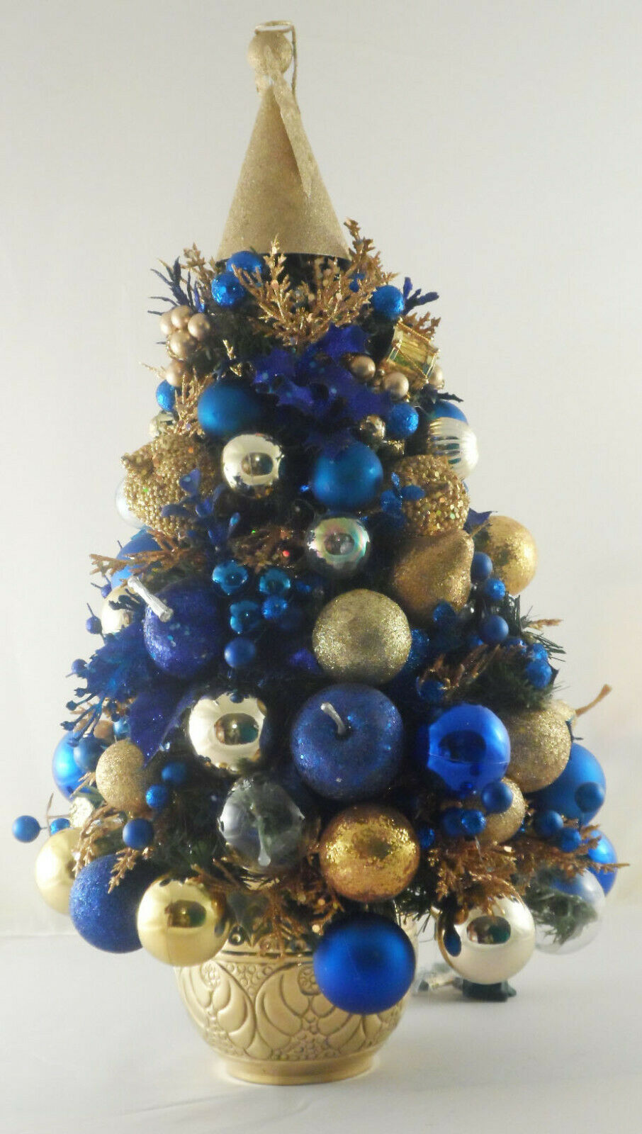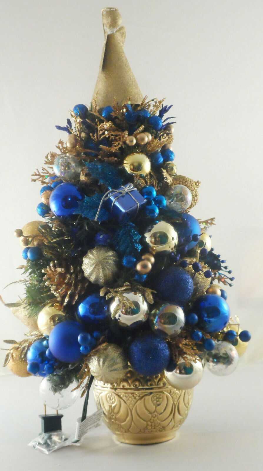 - Tabletop Royal Blue and Gold Lighted Decorated Mini Christmas Tree 18 inch