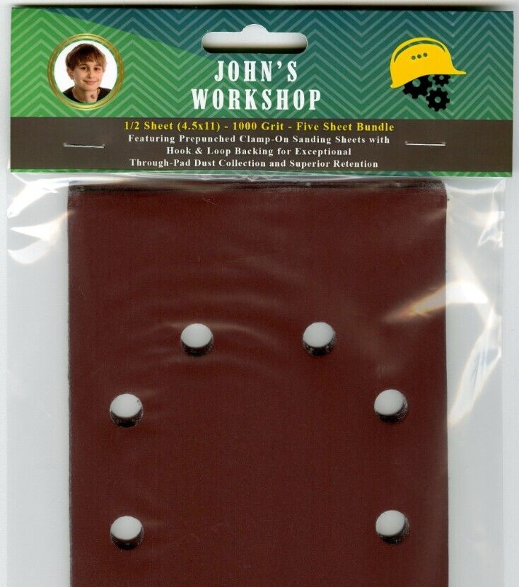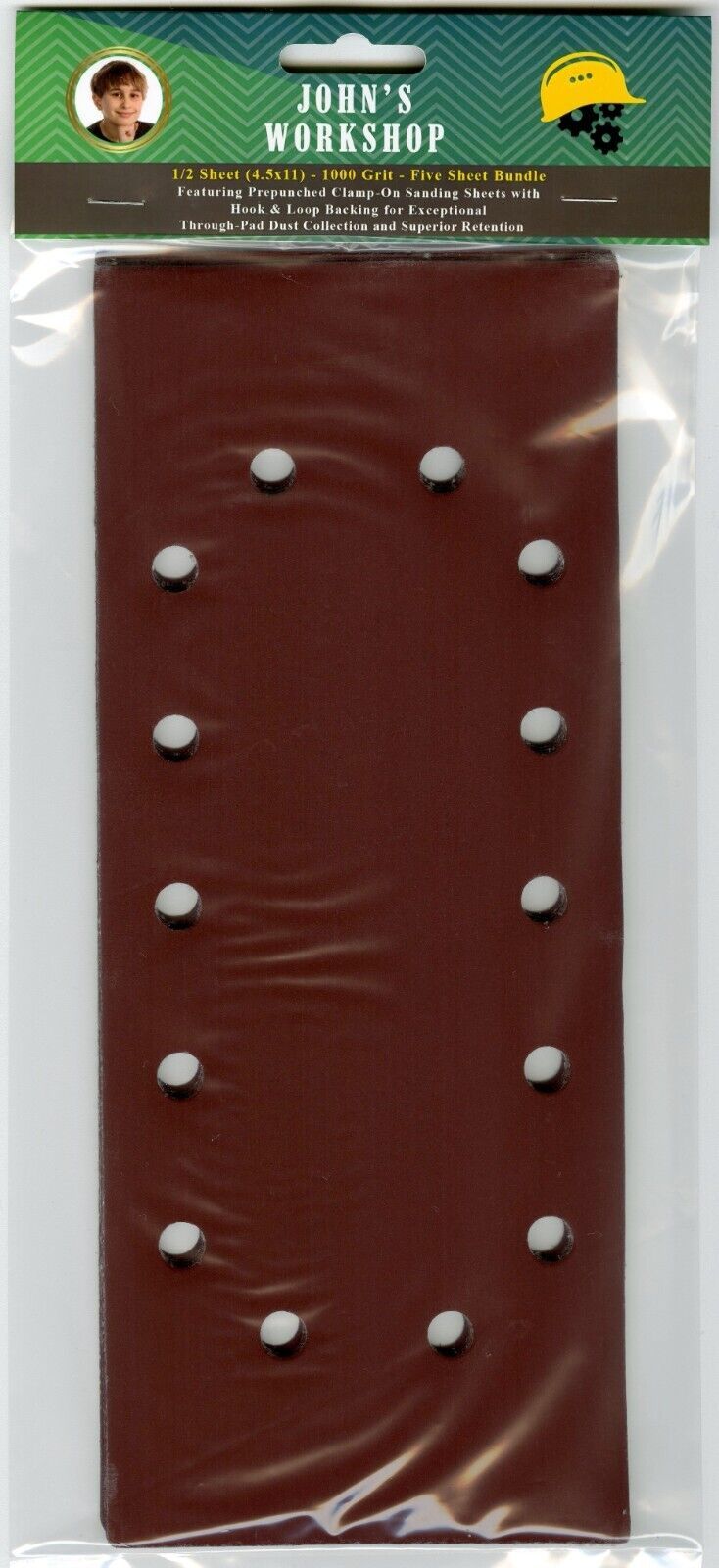 - Tacklife PSS02A - 1/2 Sheet - 1000 Grit - No-Slip - 5 Sandpaper Bundle