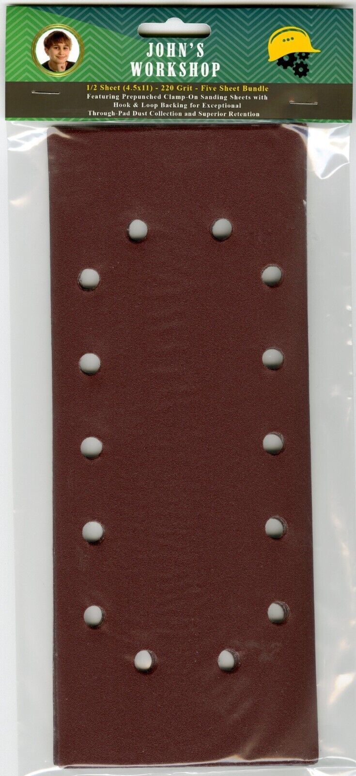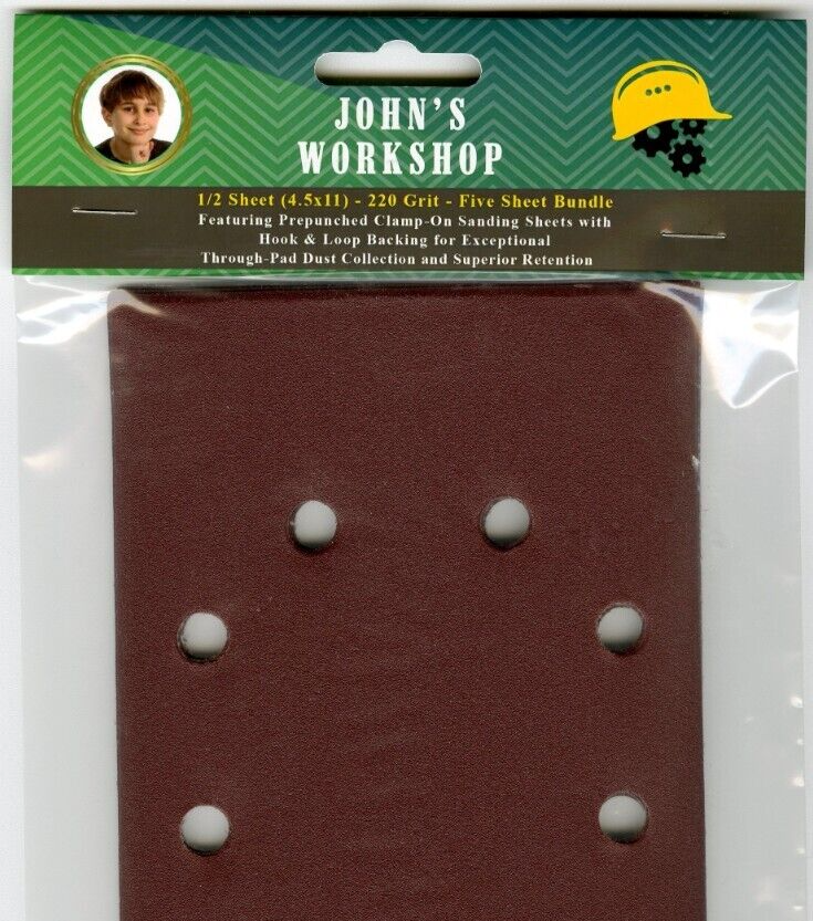 - Tacklife PSS02A - 1/2 Sheet - 220 Grit - No-Slip - 5 Sandpaper Bundle