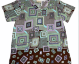 - Tafford Scrub Shirt Sz S Small Purple Green Brown Geometric Nurse Vet Tech Xray