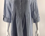 Tahari Shirt Dress Size Large Blue White Striped Roll Tab Sleeve Linen Blend
