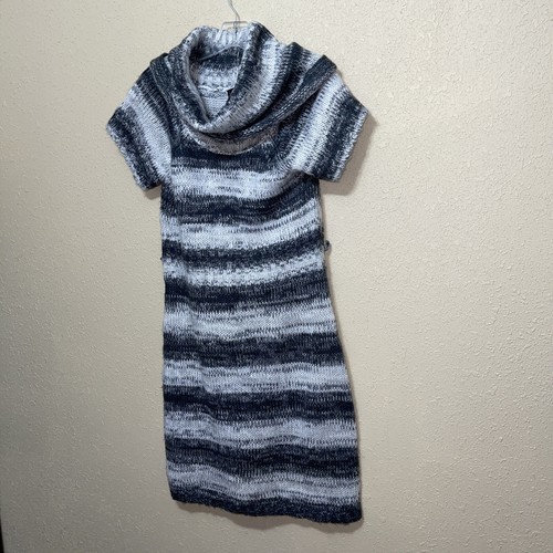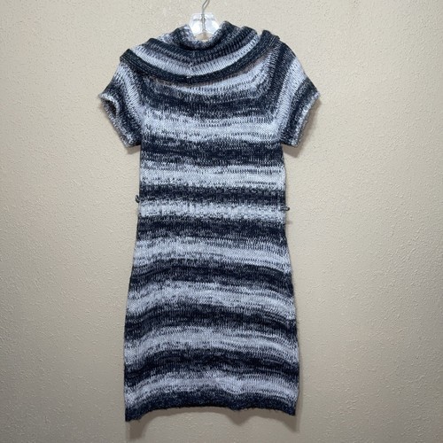 Take Out KNIT Sweater Dress Womens Striped Cowl Neck Short Sleeve SZ M NEW