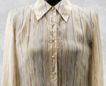Talbots 100% Silk Striped Button Front Blouse Beige Gold Sheer Women's Size 4