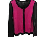 Talbots Pure Italian Merino Womens Cardigan Sweater Button Up Black Pink Size L