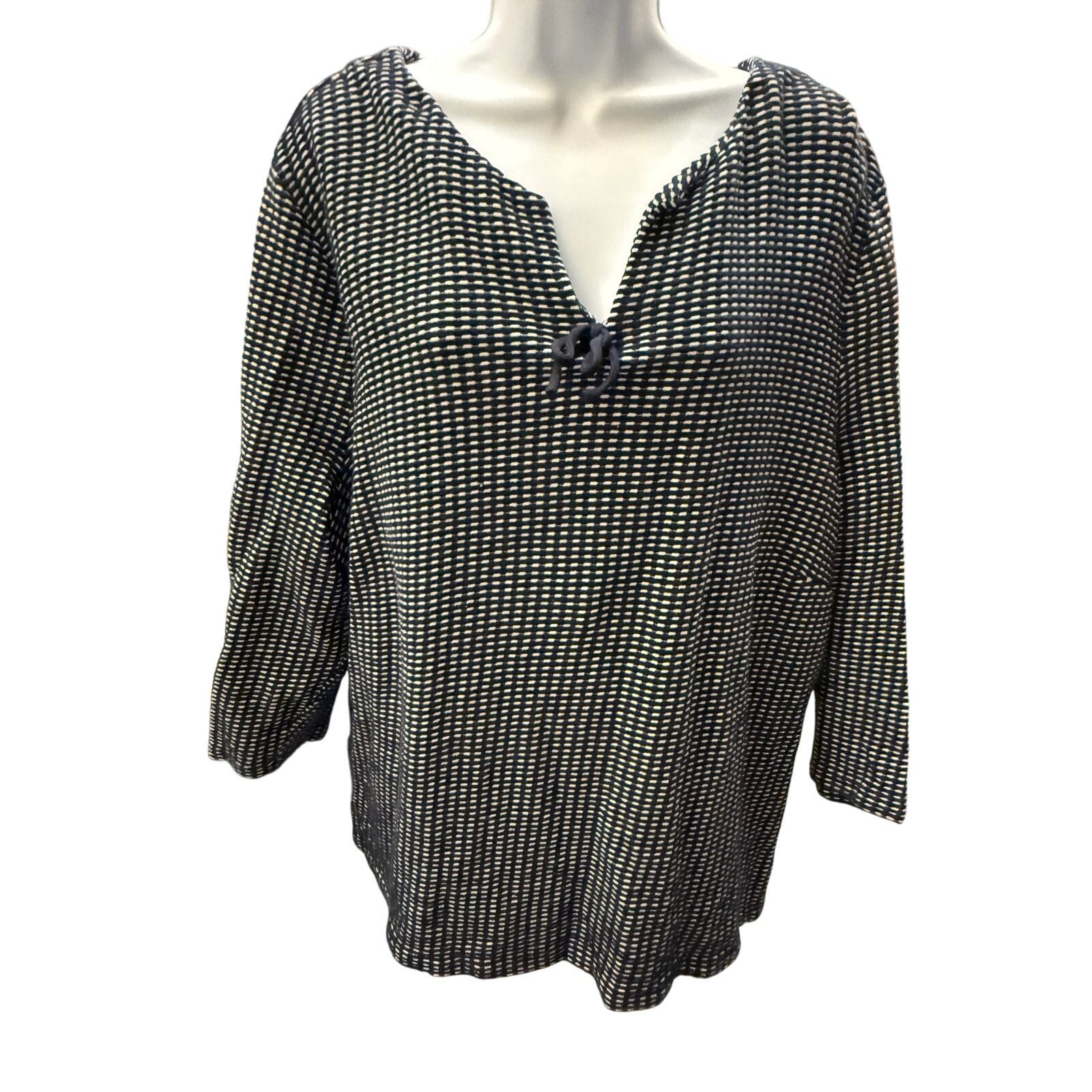 - Talbots women 3X black white tunic long sleeve top draw string