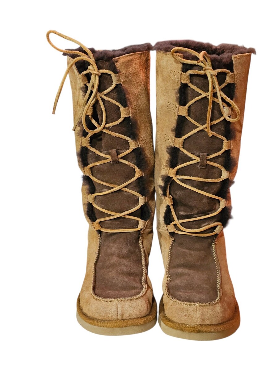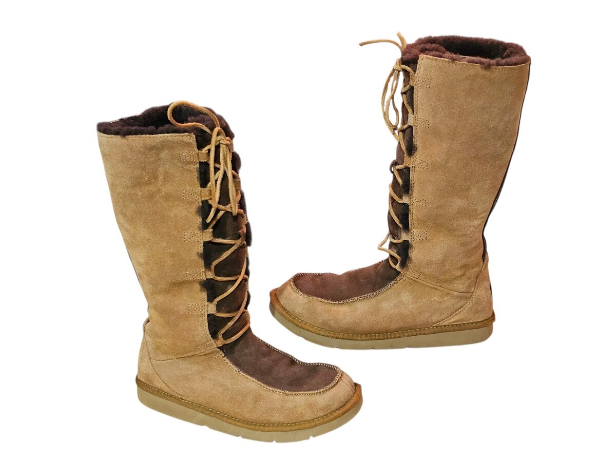 - Tall UGG Whitley Moccasin Boots. Sheepskin Suede Leather Lace Size 9 EU 40