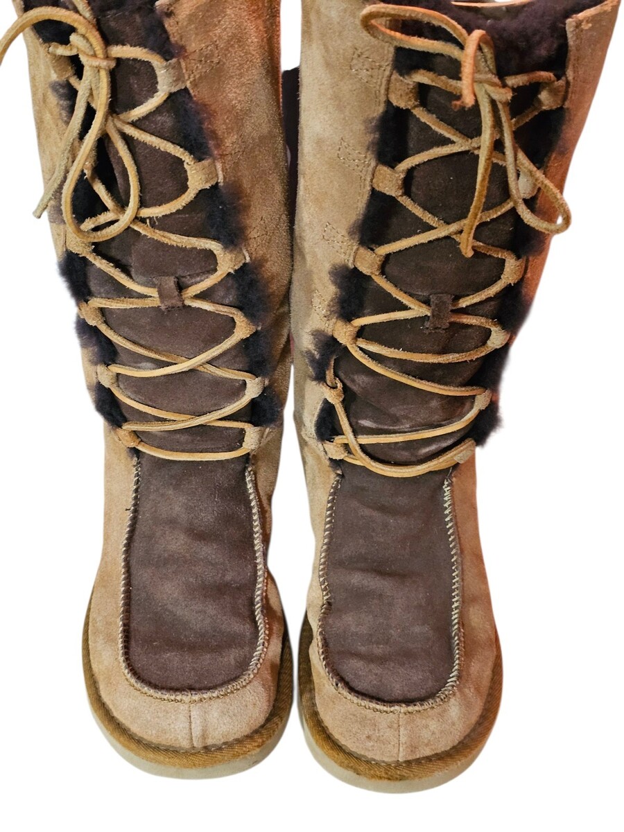 Tall UGG Whitley Moccasin Boots. Sheepskin Suede Leather Lace Size 9 EU 40