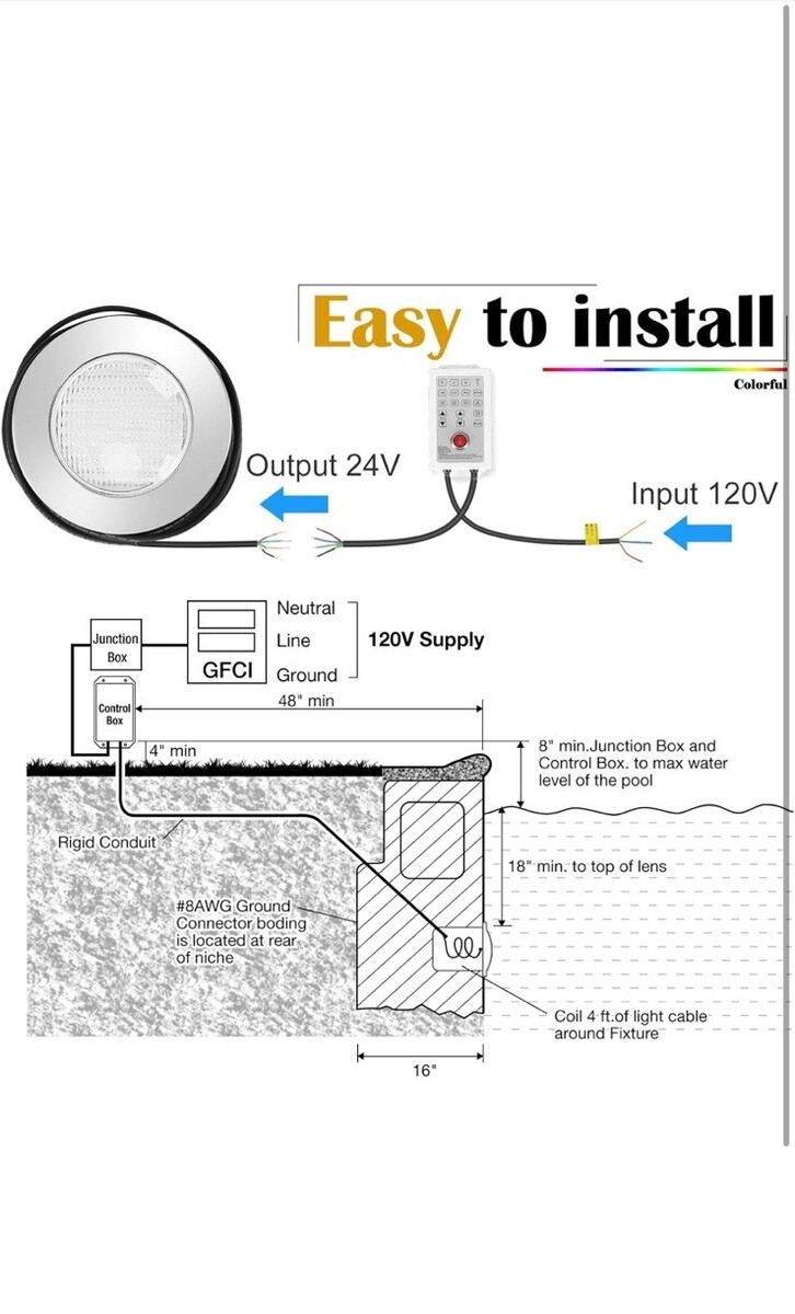- Tandanic Color Changing LED Pool Light | Remote Controller | 60W 10 Inch *100ft
