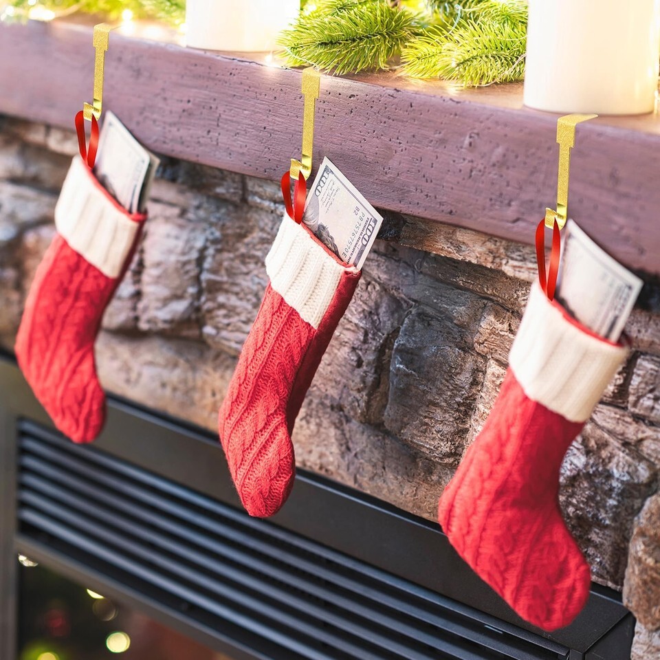 - Tandefio 12 Pack Glitter Christmas Stocking Holder Hangers Gold Mantel Hooks