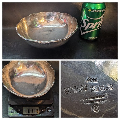 A vendre est un argent sterling de Tane Mexican Mexico 925 qui mesure 7 pouces dans un bol de diametre avec une bordure festonnee qui pese 13 oz.