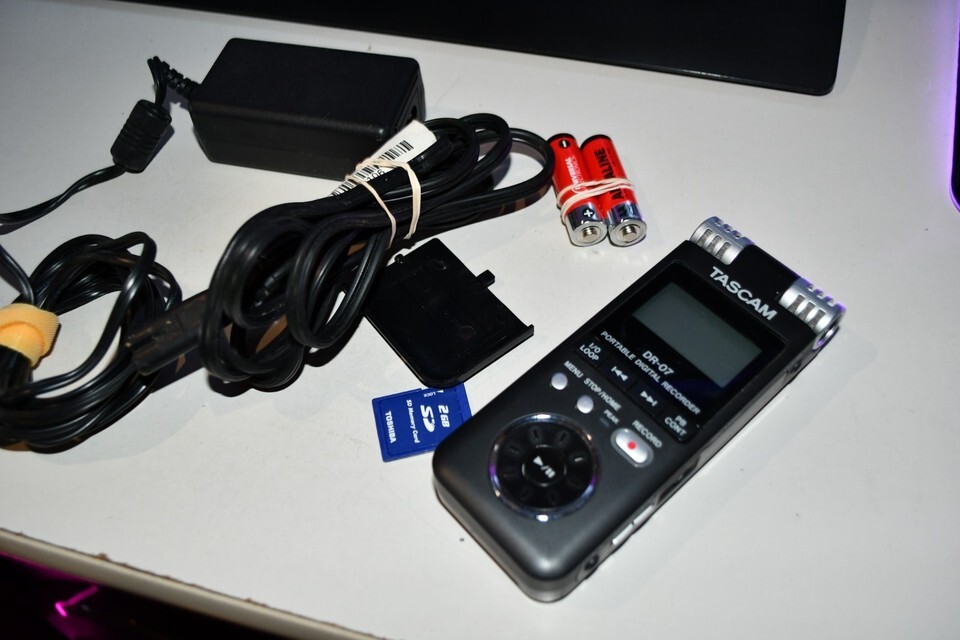 - Tascam DR-07 Stereo Handheld Digital Audio Recorder w/ Cords And 2GB SD Card 2f