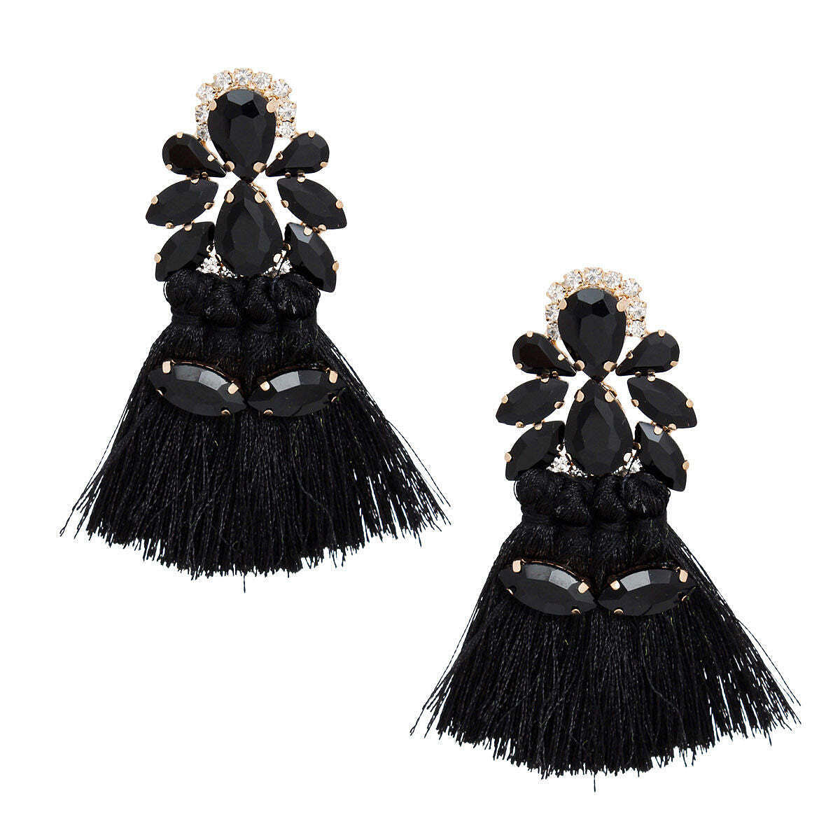 Unleash Your Inner Statement Maker: Tassel Black Crystal Medium Earrings