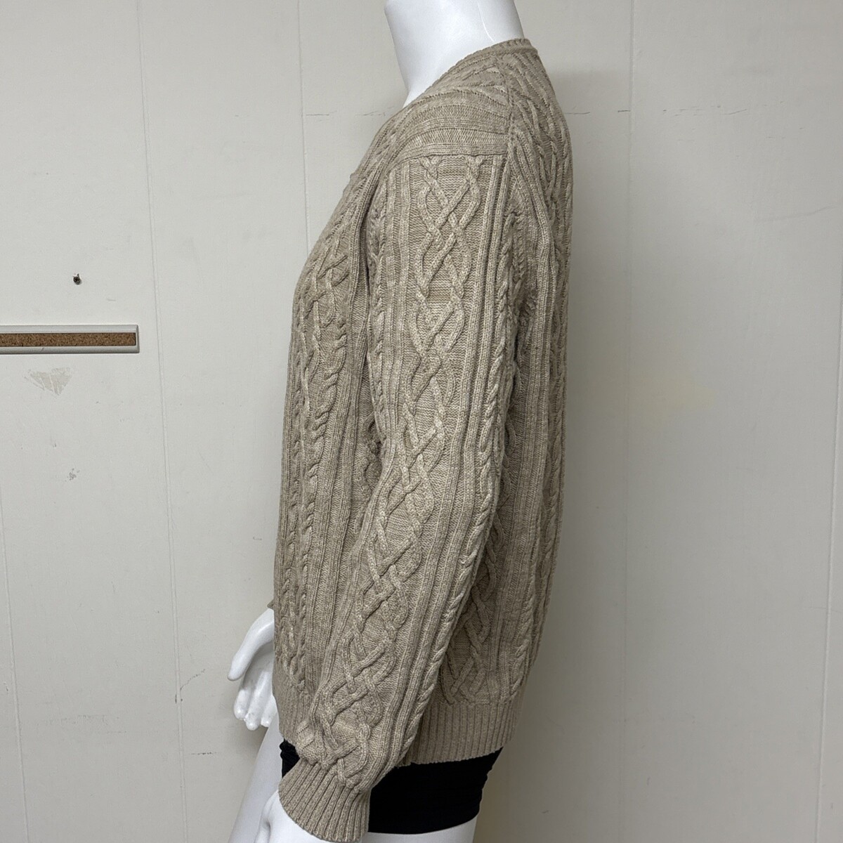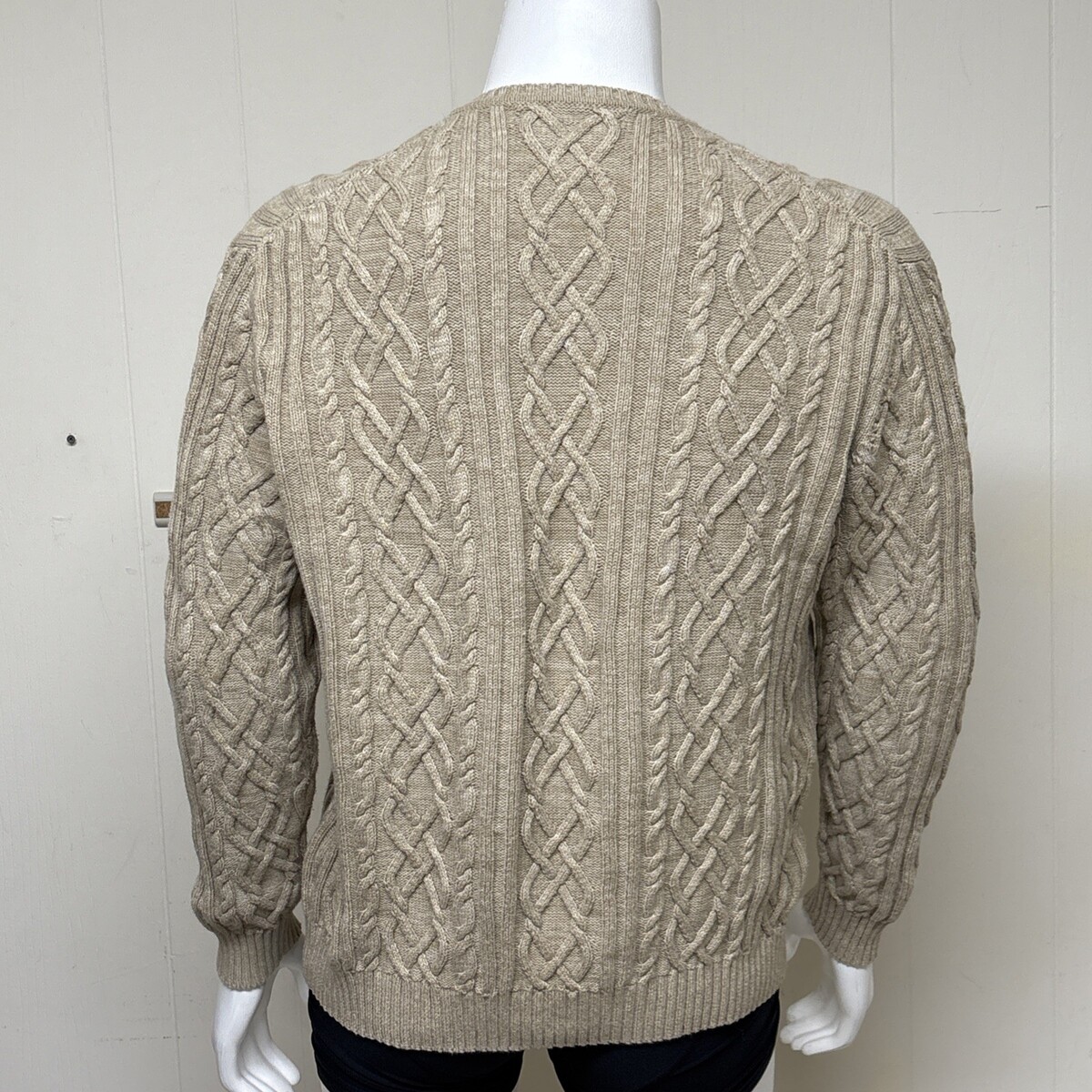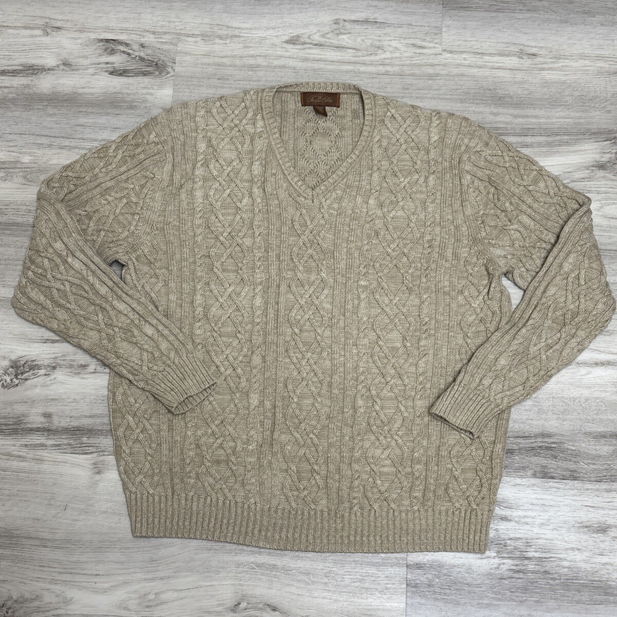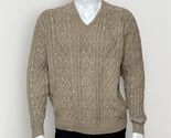 - Tasso Elba Cable Knit Sweater Mens L Wheat 100% Cotton V Neck Heavy Pullover