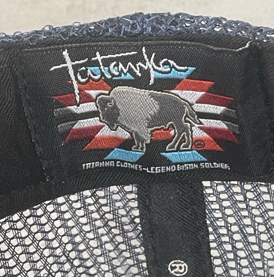 Tatanka Clothes Trucker Hat – Bison Buffalo Patch Blue Mesh Snapback – Tan Brim
