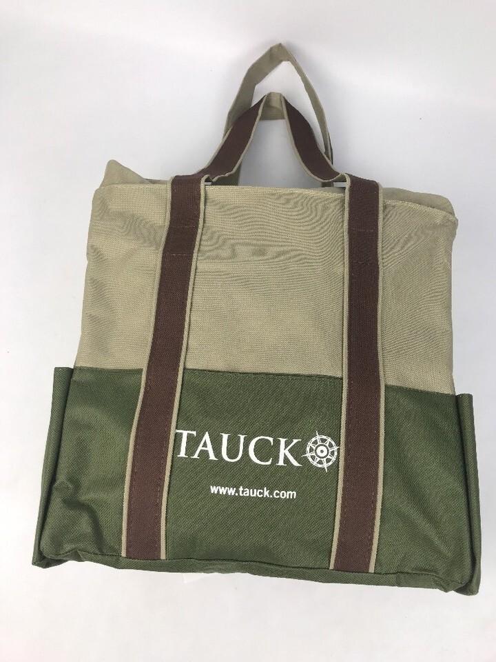- Tauck Tours Cloth Travel Bag Forrest Green Brown / Beige Zipper Beach Grocery Eu