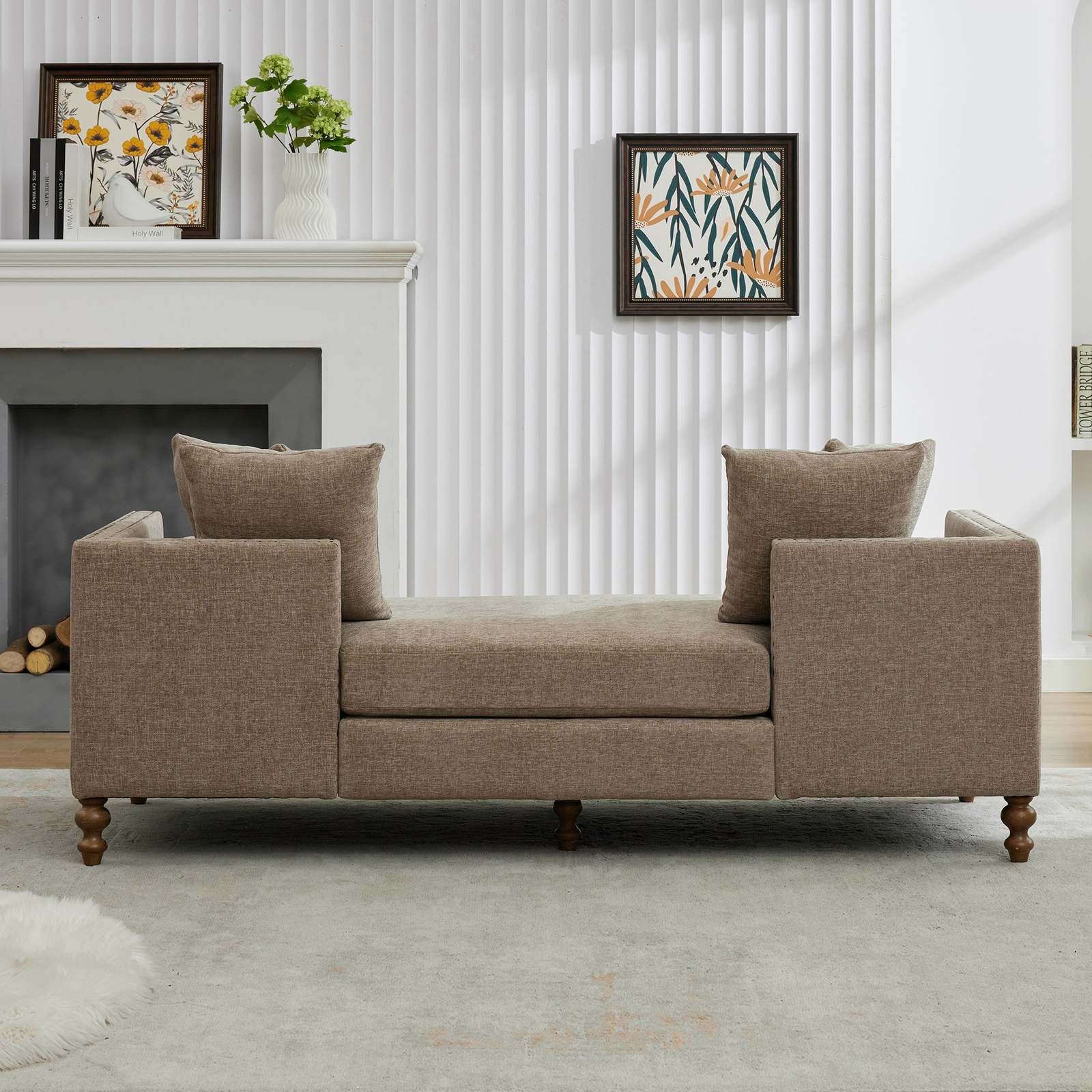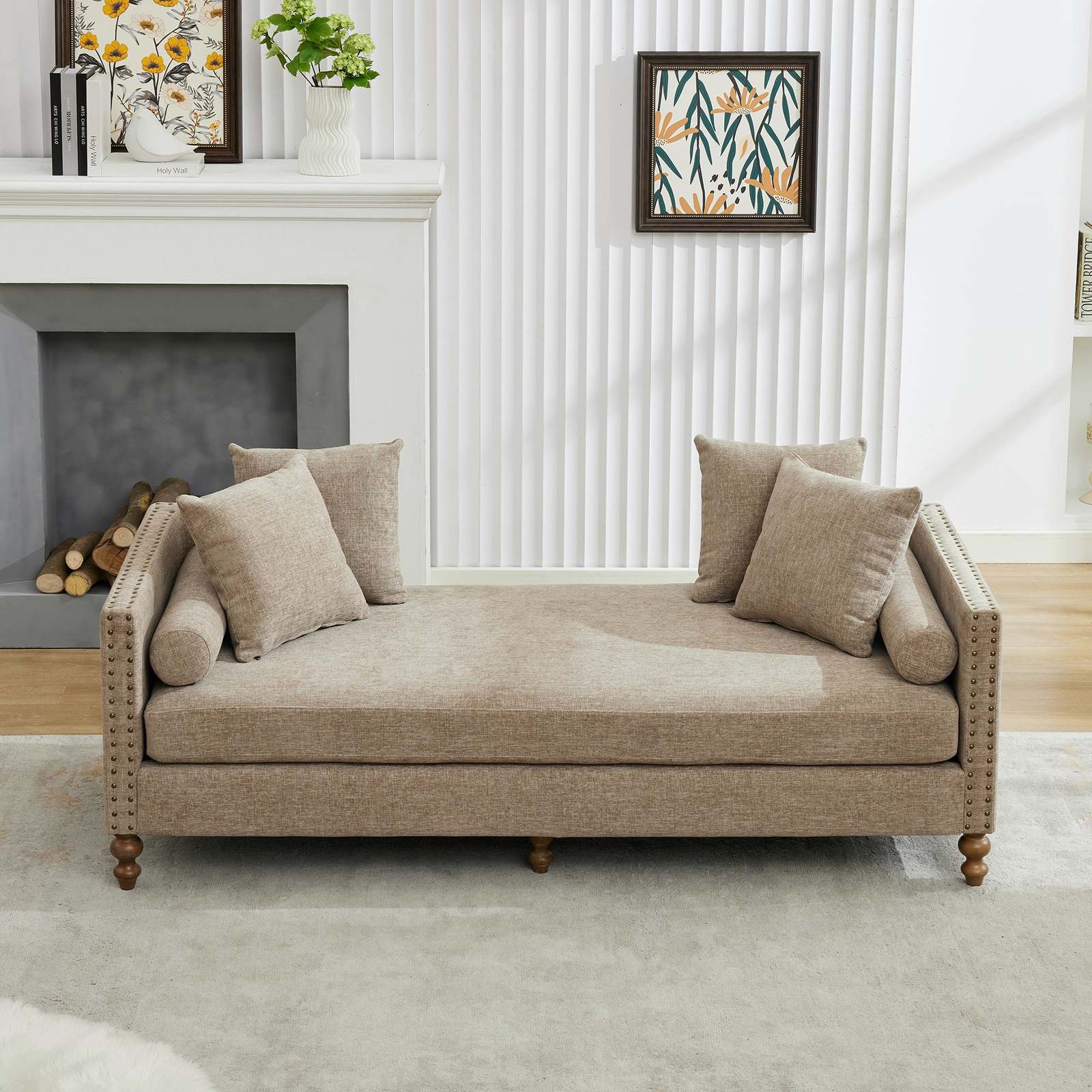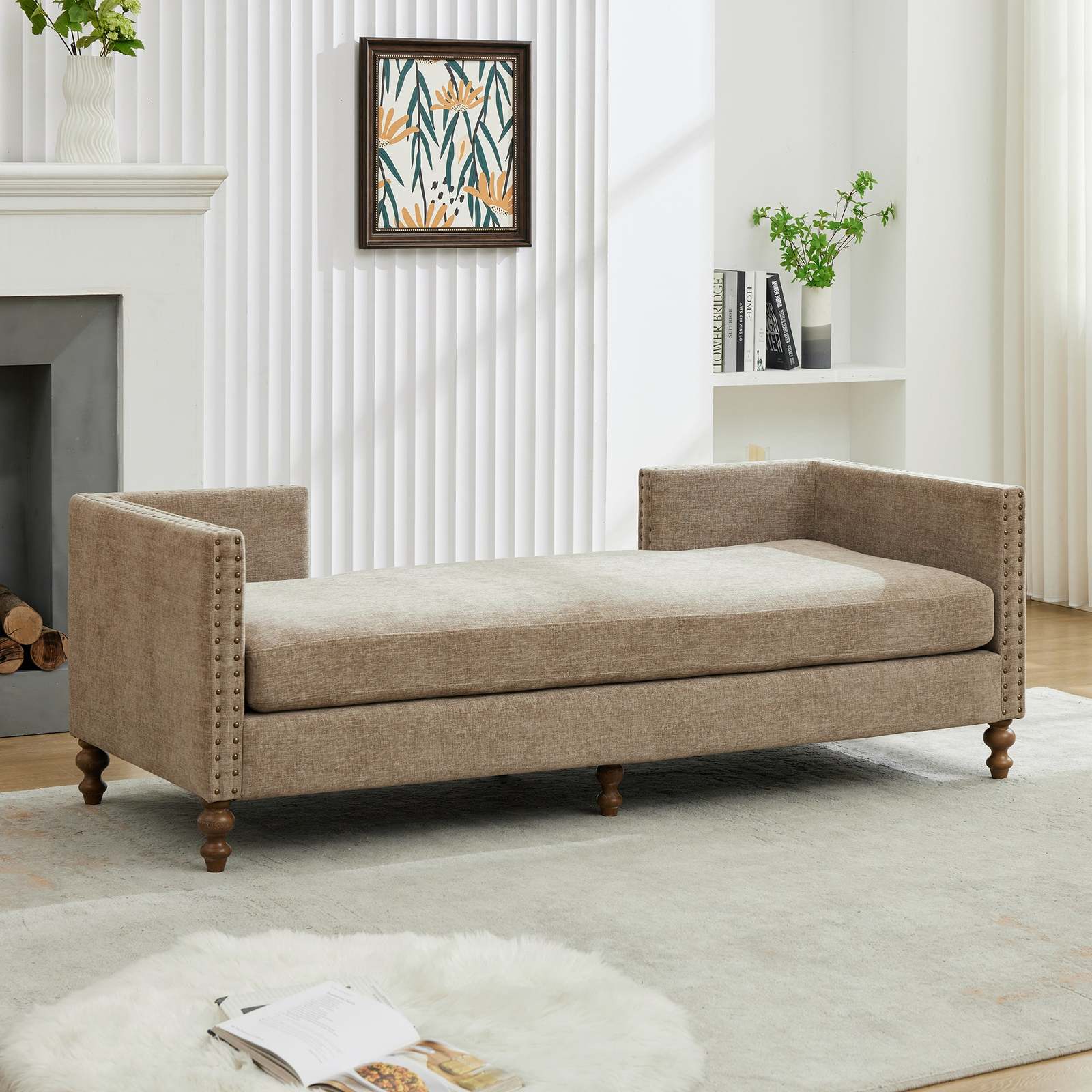 - Taupe Chenille Chaise Lounge Sofa Daybed w/Nailheads, 75.2" Wide