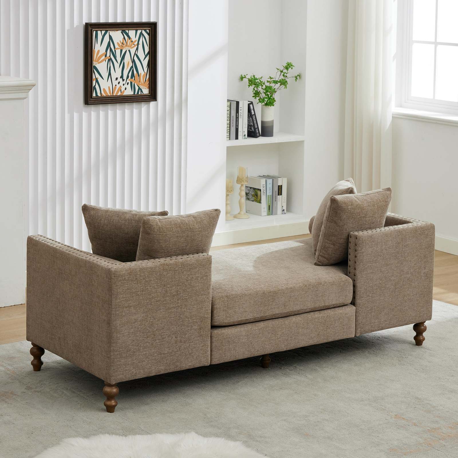 Taupe Chenille Chaise Lounge Sofa Daybed w/Nailheads, 75.2" Wide