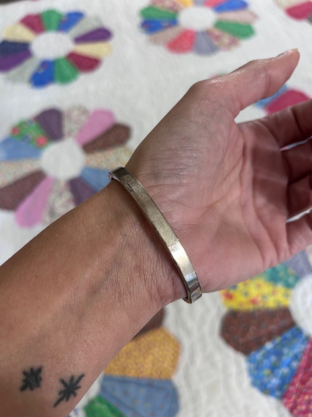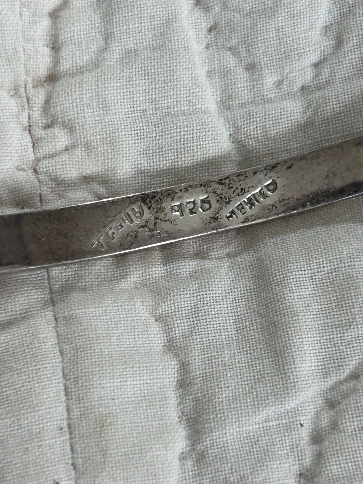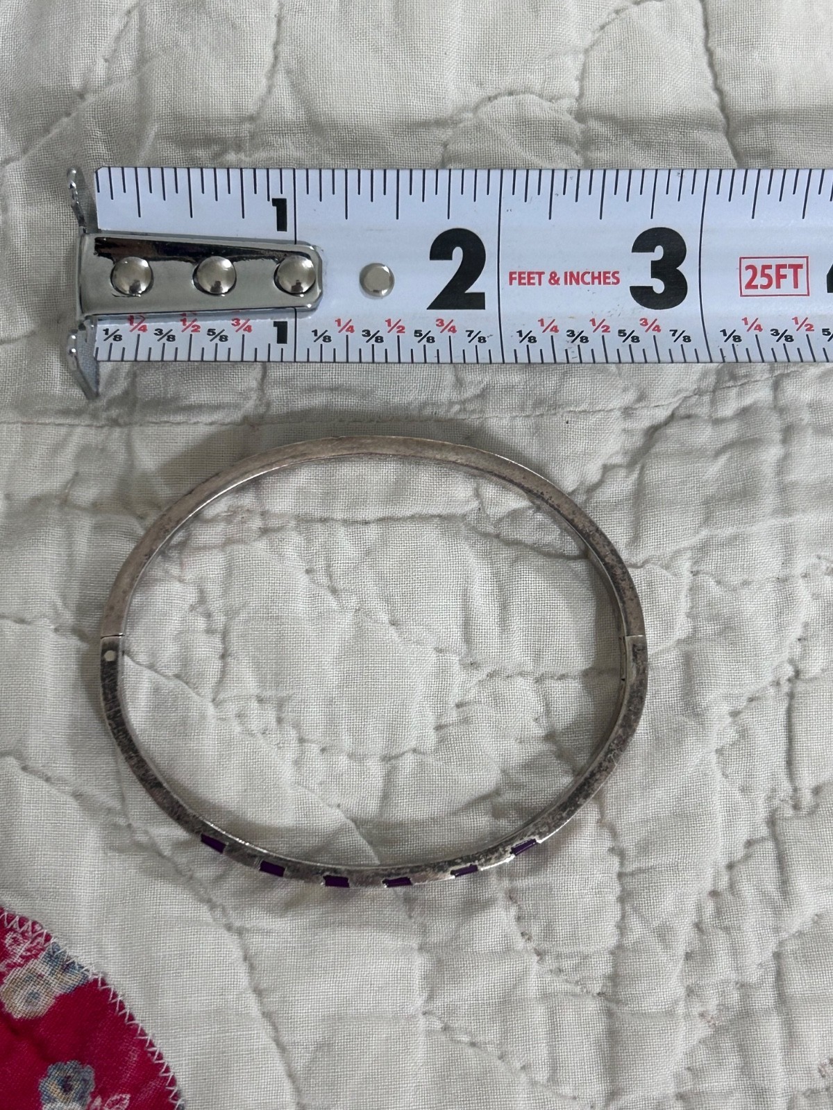 Taxco Mexico 925 Sterling Silver Hinged Bracelet with purple stone inlay. Significant patina, see photos