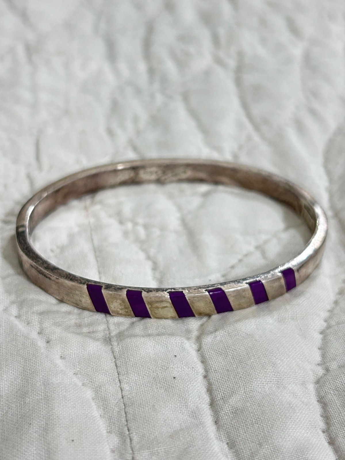 - Taxco Mexico 925 Sterling Silver Hinged Bracelet with purple stone inlay