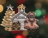 ?Style/Features: Show your favorite educator appreciation with this charming and unique teacher Christmas brooch. This festive, three dimensional pin is the perfect holiday school gift they can use all year long. Features a detailed school to honor their dedication. Constructed of all metal it has a gold holiday tree, silver school and copper gingerbread woman in an antiqued mixed metal design. It can be pinned on a messenger bag, backpack, lanyard, coat or proudly displayed in the classroom. Give a one-of-a-kind gift that is both appropriate and goes beyond a mug. Can also be used as a gift topper on a wrapped gift hung as an ornament too! Teacher will use and remember this gift for years. Ships in a crisp pale pink box ready for a red ribbon gifting.