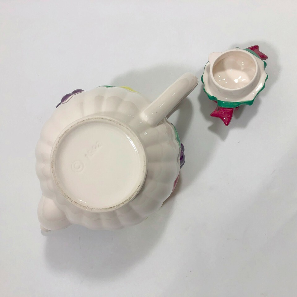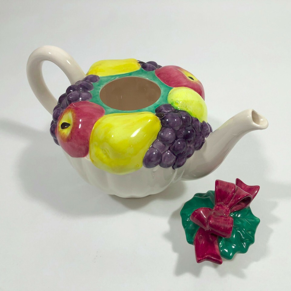 - Teapot Large Fruit Red Bow 1992 Teapot 11x6.5x6.5 inches Vintage
