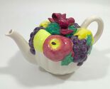 EUC, Excellent Used Condition. Beautiful vintage fruit motif teapot. Apples, lemons, and grapes with a burgundy bow on the top lid make this teapot stand out. It holds over 1 quart of tea or other beverage. This would be a beautiful addition to your dining or next tea party.