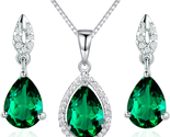 - Teardrop Birthstone 925 Sterling Silver Rhodium Plated Gemstone Jewelry Set for