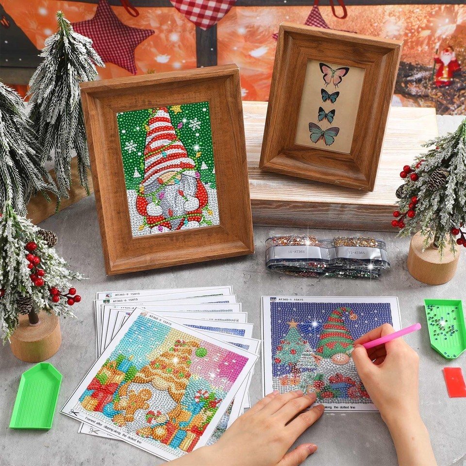 - TecUnite Christmas Diamond Painting Kit Gnome 6x6 Inch Classical 9 Pcs