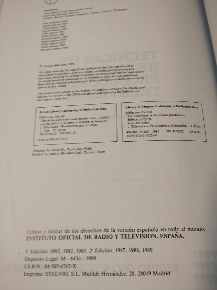 Technical De Realizacion And Production Television Gerald Millerson 1989 - Bo...